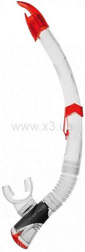 Трубка для дайвинга и сноркелинга по максимуму воплощает в себе все возможные характеристики: гофру, нижний клапан для быстрого удаления воды, анатомический загубник для комфортного состояний вашей челюсти во время плавания, крепление для маски, волноотбойник.