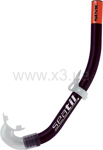Крепится трубка к ремешкам маски с помощью быстро регулируемой резиновой клипсы.