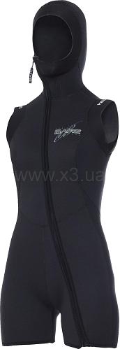 Дополнительные 3 мм манжеты вокруг плеч, имея гладкую внутреннюю поверхность и высокую эластичность, сводят к минимуму циркуляцию воды между костюмом и жилетом.