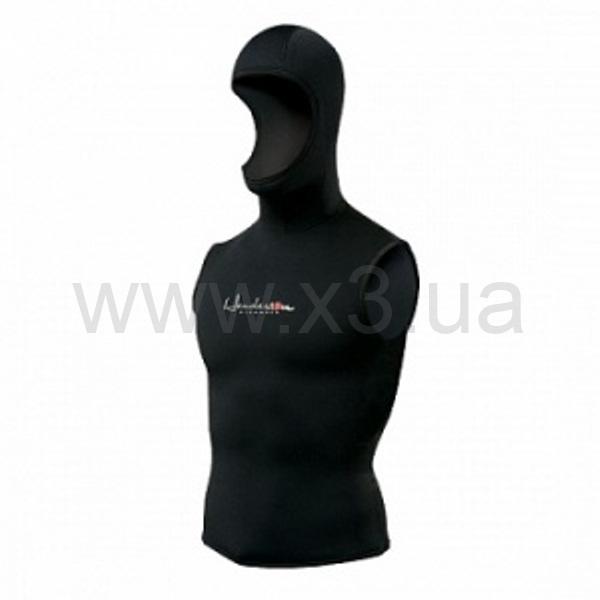 Майка со шлемом – необходимый элемент снаряжения, который позволяет сохранять тело в тепле. Используется вместе с гидрокостюмом мокрого типа.
